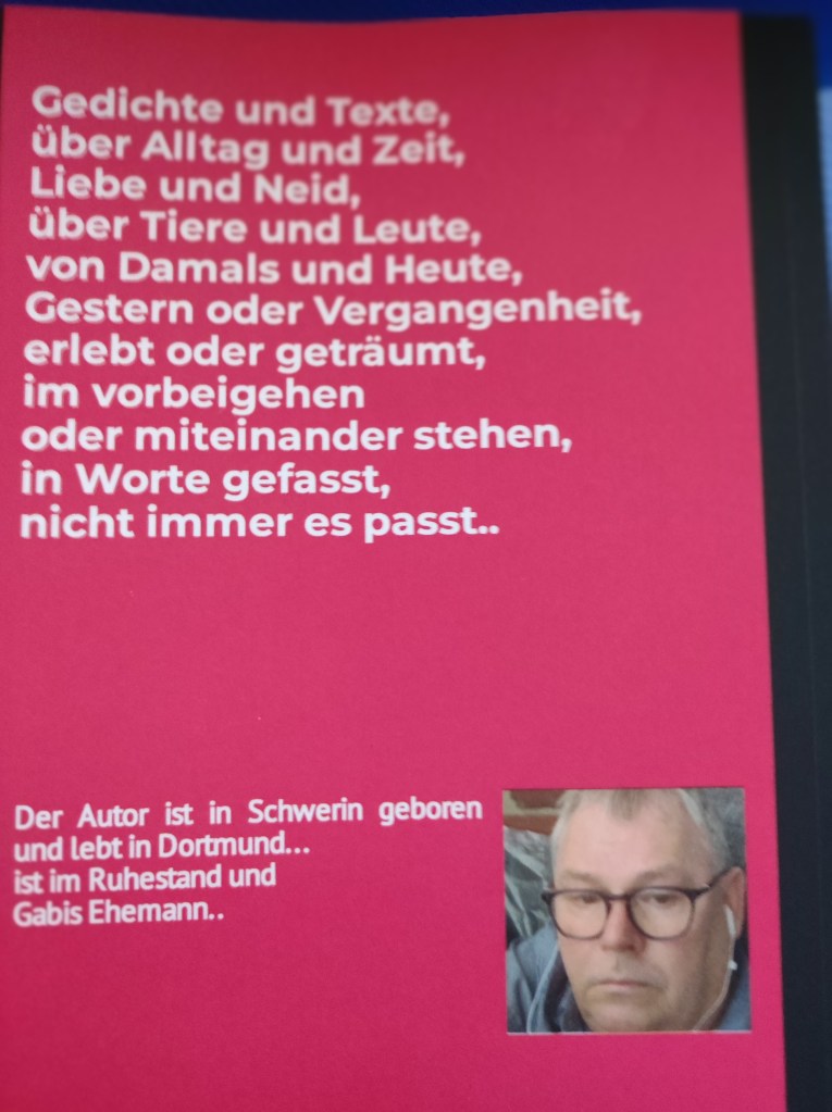 Schreiberling aus Dortmund entdeckt seine Muse und veröffentlicht Gedichte und Verse. Der Erste Gedichtband mit dem schönem Titel …“Gabis Mann schreibt Gedichte“ ..ist bei Kindle Amazon im Selbstverlag erschienen ..